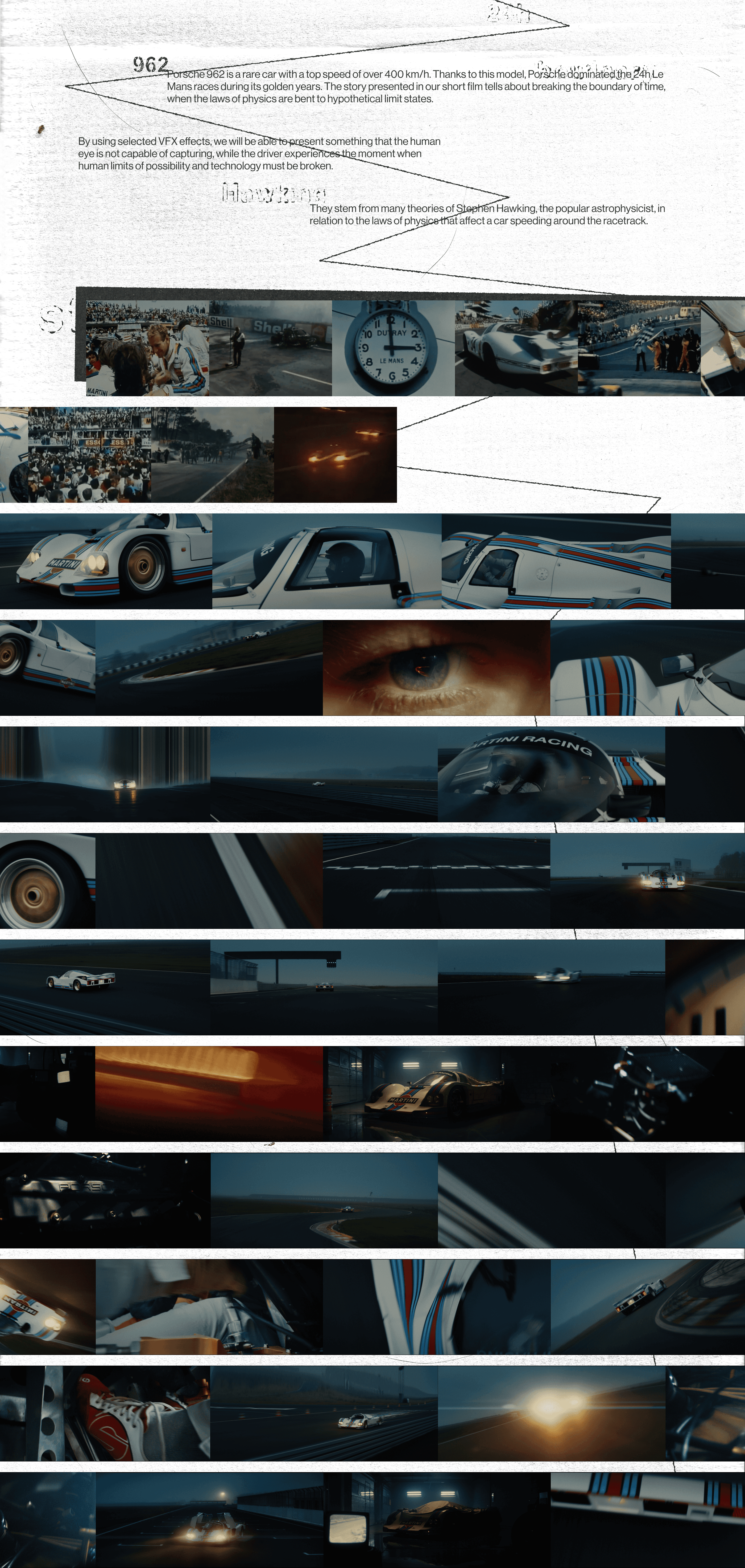 A redesign of a visual tribute to Le Mans, rebuilt with a cleaner layout and modernized visuals. The update incorporates mixed-media typography collages to add texture, contrast, and a more expressive graphic approach.